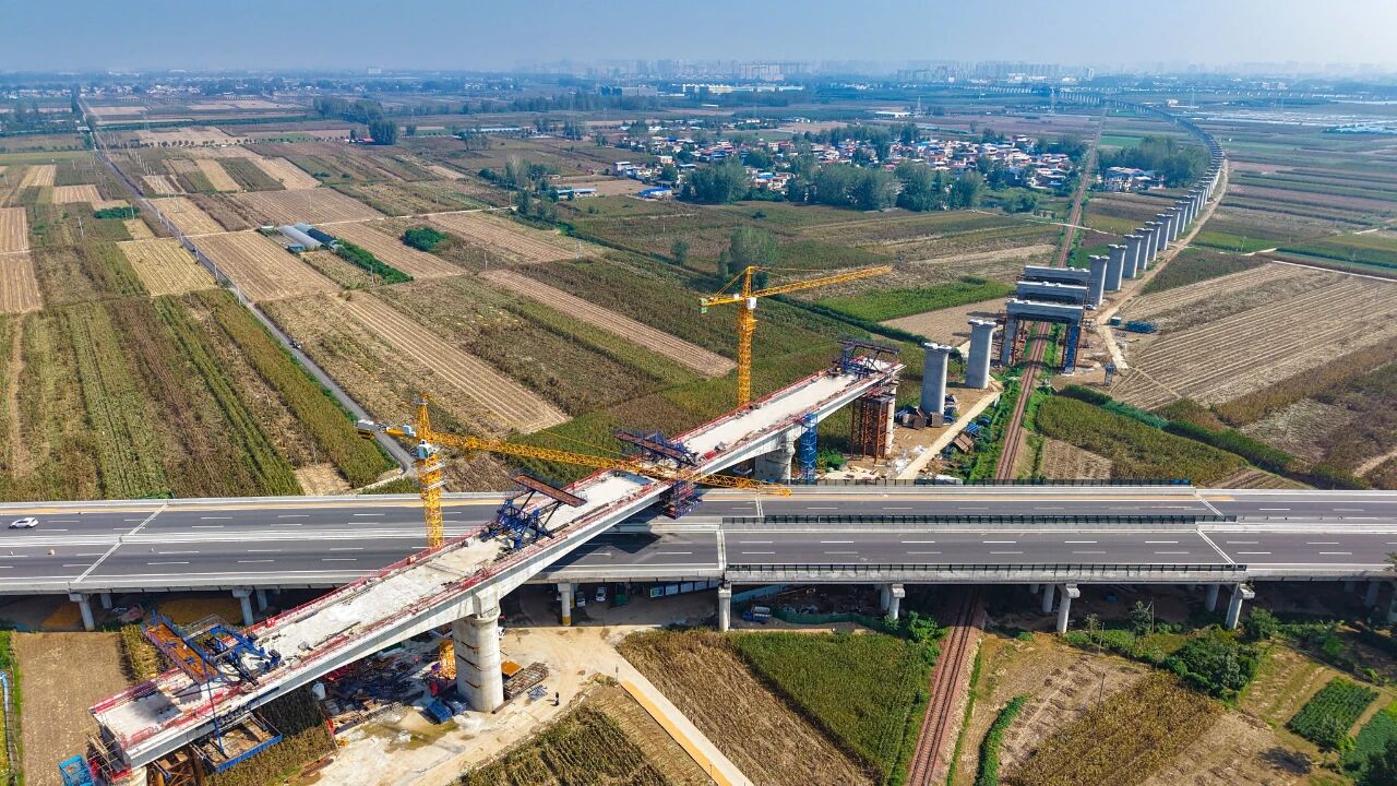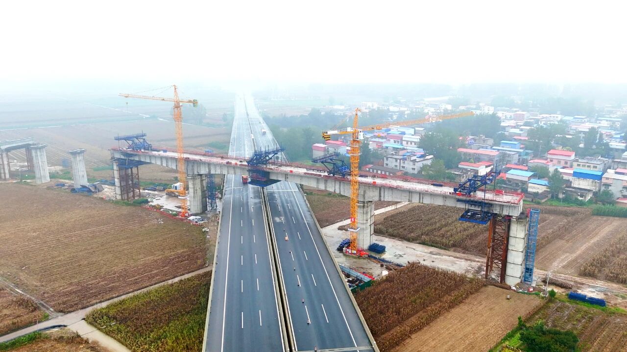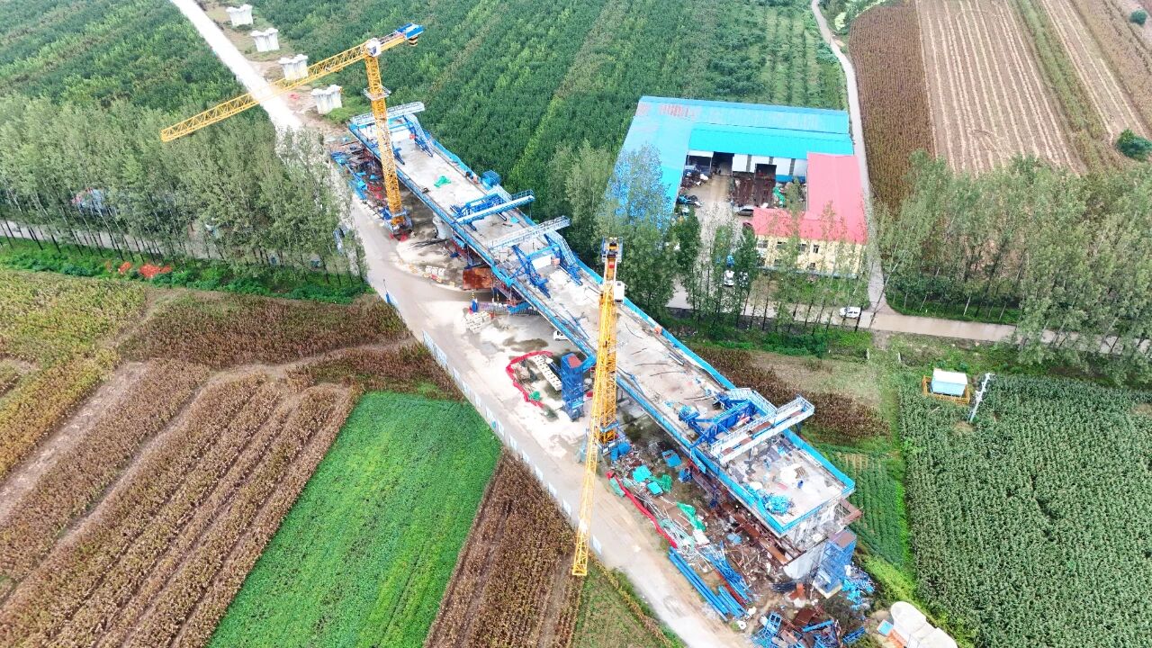 平漯周高鐵站前四標跨澧河河堤路及跨Y025鄉道連續梁順利合龍